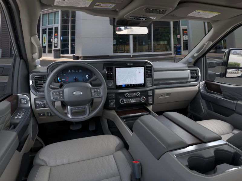 PLATINUM PLUS PACKAGE satin chrome tailgate applique, premium suede wrapped pillars, premium leather interior grab handles and upgraded floor mat accents matching premium interior theme, Platinum Plus experience includes premium maintenance plan - coverage up to 2 years or 25,000 miles (whichever comes first), Covers routine inspections, preventive care, and replacement of normal wear and tear items that require periodic attention, elite welcome call, welcome package and tribute item, accessories discount (90 day window), Ford rewards upgrade tier and 1:1 texting w/Ford truck expert, Premium Venetian Leather Door Panel, applied French stitching, Upfitter Switches (6), Located in overhead console, Max Recline Seats, 10-way power driver and 8-way power passenger and 4-way headrests, ENGINE: 6.7L HIGH OUTPUT POWER STROKE V8 DIESEL Turbo diesel B20, manual push-button engine-exhaust braking and Operator Commanded Regeneration (OCR), SECURICODE KEYLESS ENTRY KEYPAD (DRIVERS SIDE) Integrated into the B-pillar, TRANSMISSION: TORQSHIFT 10-SPEED AUTOMATIC SelectShift and selectable drive modes: normal, eco, slippery roads, tow/haul and off-road (STD). MP3 Player, Privacy Glass, Steering Wheel Controls, Child Safety Locks, Heated Mirrors.