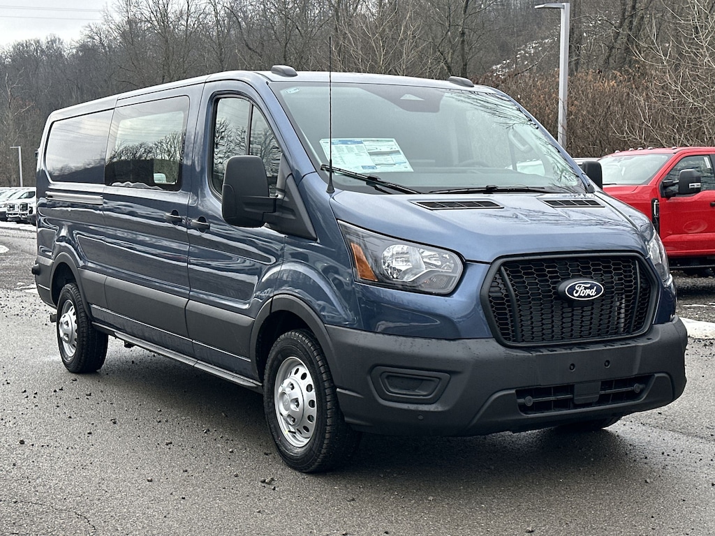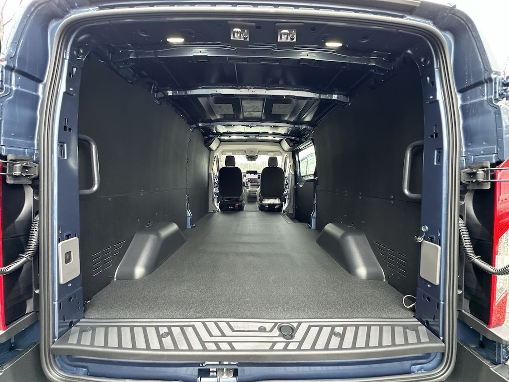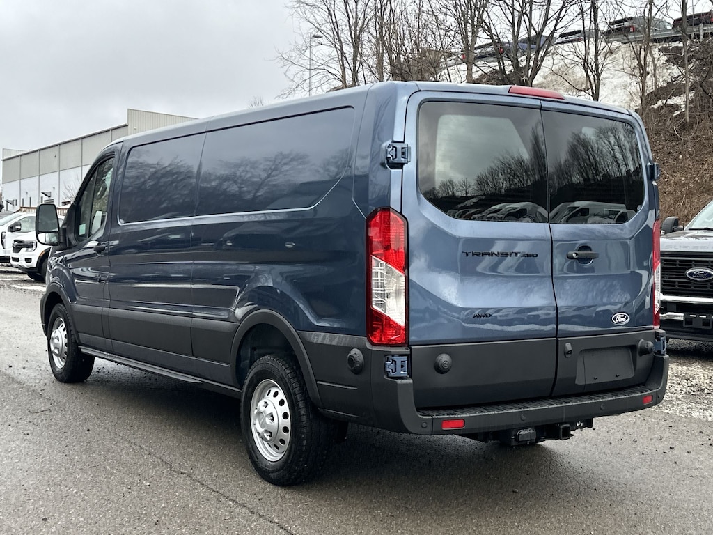 Navigation, All Wheel Drive, Back-Up Camera, Flex Fuel, iPod/MP3 Input, Onboard Communications System, Keyless Start, Lane Keeping Assist, Smart Device Integration, WiFi Hotspot, Apple CarPlay®. Ford Transit Cargo Van with Blue exterior and Dark Palazzo Gray interior features a V6 Cylinder Engine with 275 HP at 6250 RPM*.