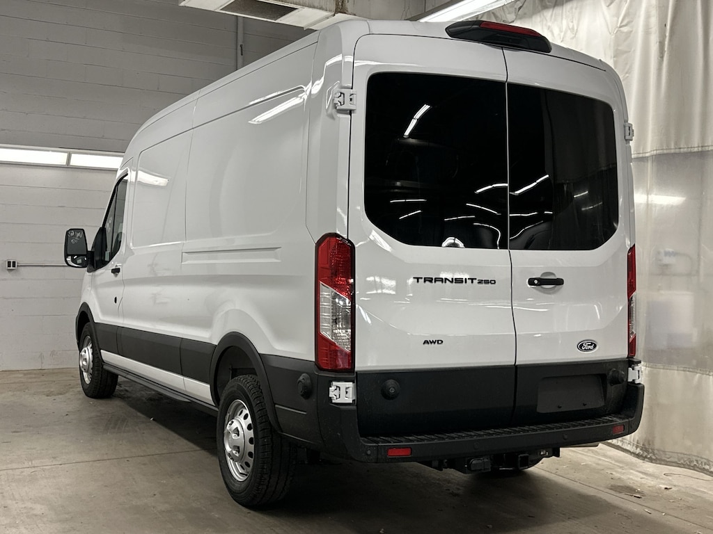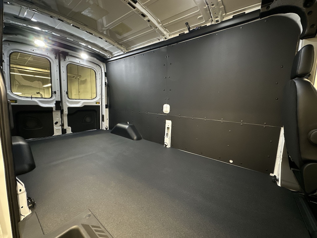 Navigation, All Wheel Drive, Back-Up Camera, Flex Fuel, iPod/MP3 Input, Onboard Communications System, Keyless Start, Lane Keeping Assist, WiFi Hotspot, Smart Device Integration, Apple CarPlay® Ford Transit Cargo Van with Oxford White exterior and Dark Palazzo Gray interior features a V6 Cylinder Engine with 275 HP at 6250 RPM*.