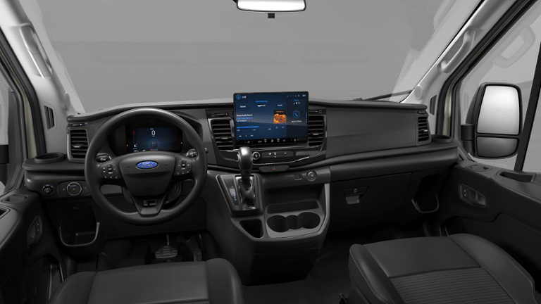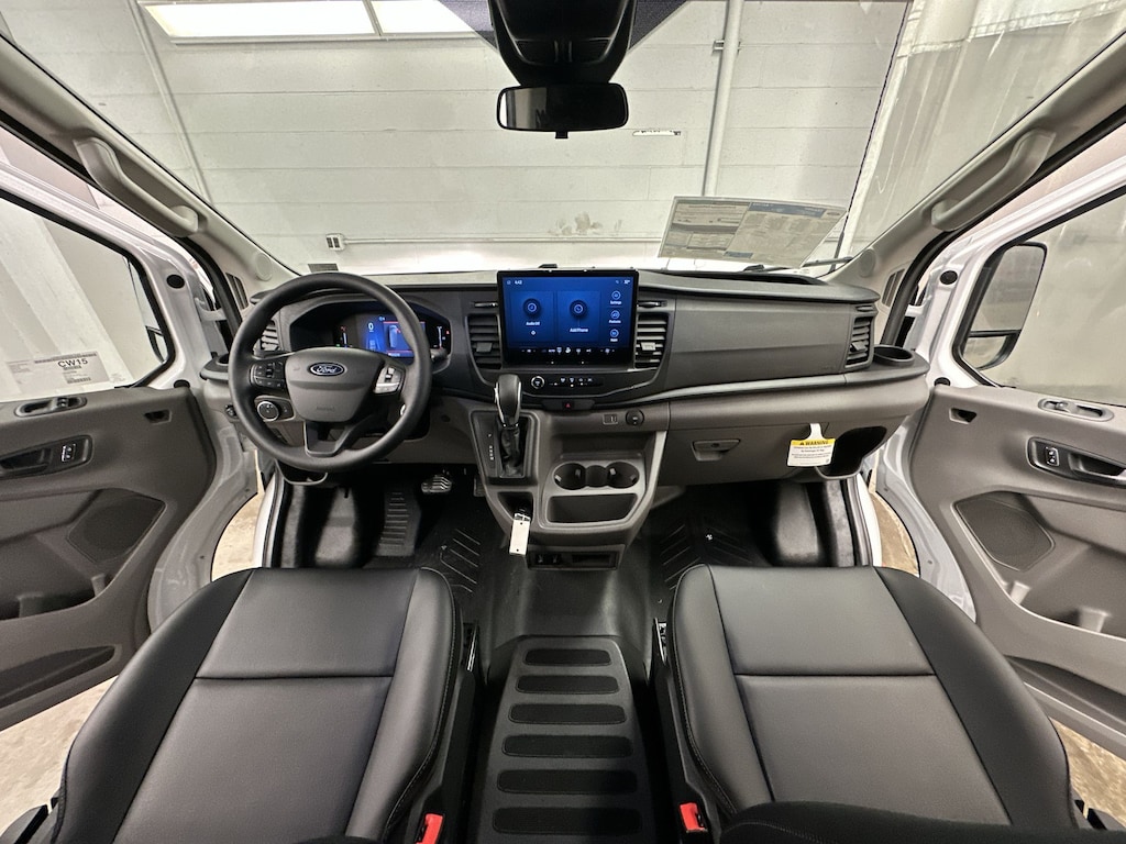 Navigation, All Wheel Drive, Back-Up Camera, Flex Fuel, iPod/MP3 Input, Onboard Communications System, Keyless Start, Lane Keeping Assist, WiFi Hotspot, Smart Device Integration, Apple CarPlay® Ford Transit Cargo Van with Oxford White exterior and Dark Palazzo Gray interior features a V6 Cylinder Engine with 275 HP at 6250 RPM*.